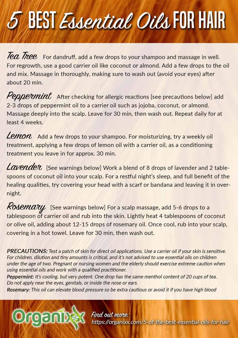 Rosemary Oil: This oil can elevate blood pressure so be extra cautious or avoid it if you have high blood pressure. Test a small patch of skin before applying to the scalp.