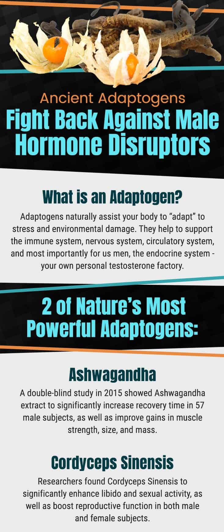 Adaptogens naturally assist your body to “adapt” to stress and environmental damage. They help to support the immune system, nervous system, circulatory system, and most importantly for us men, the endocrine system – your own personal testosterone factory.